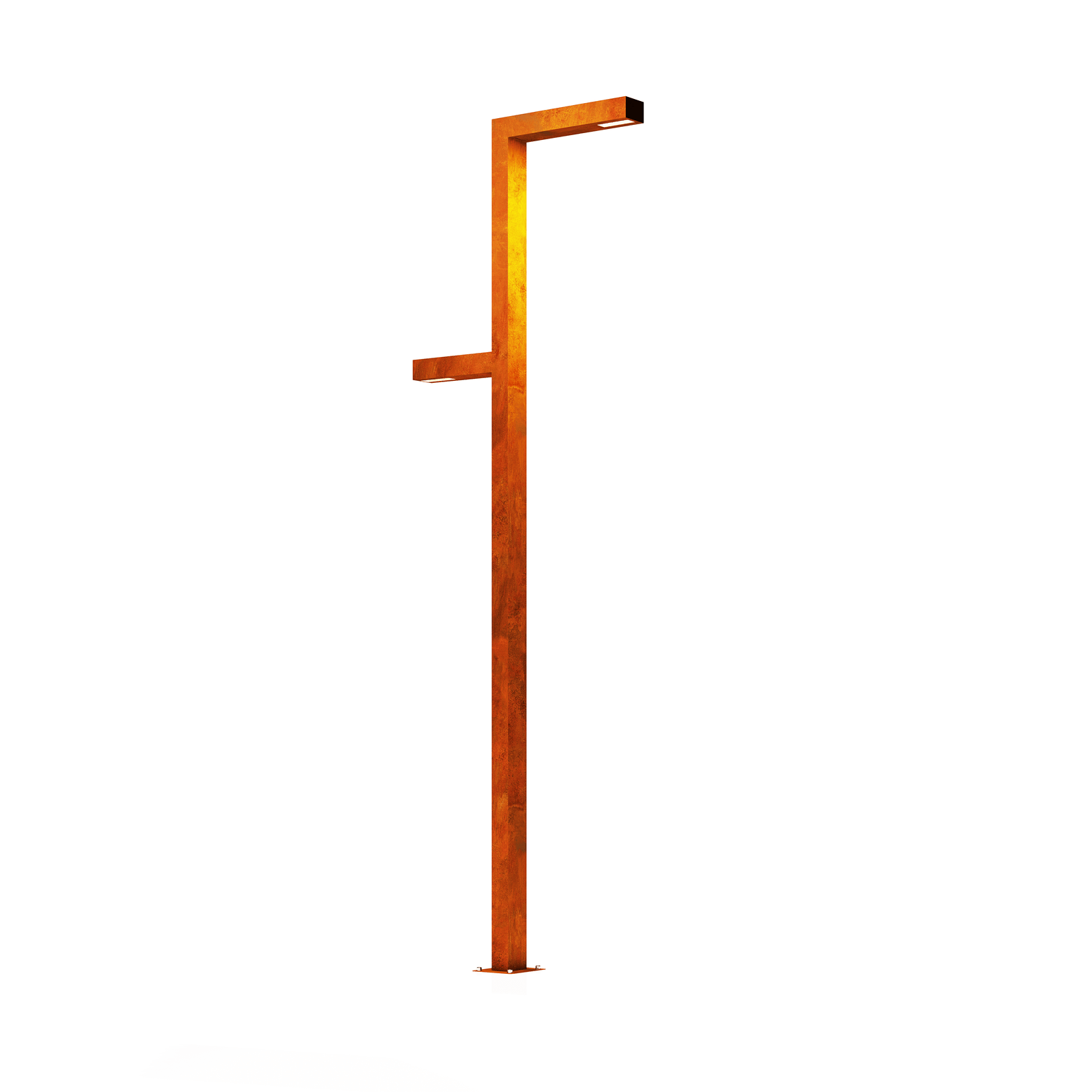 Modern, stylish, and uniquely designed – Atila Large light. This fixture, featuring two light sources, will bring warmth even to the darkest garden or park spaces. With its shape and distinctive Corten steel texture, it seamlessly blends with architectural and design elements, creating a perfect balance and harmony with the surrounding environment. It is widely applicable in parks, along bicycle and pedestrian paths, or as part of street lighting design.
