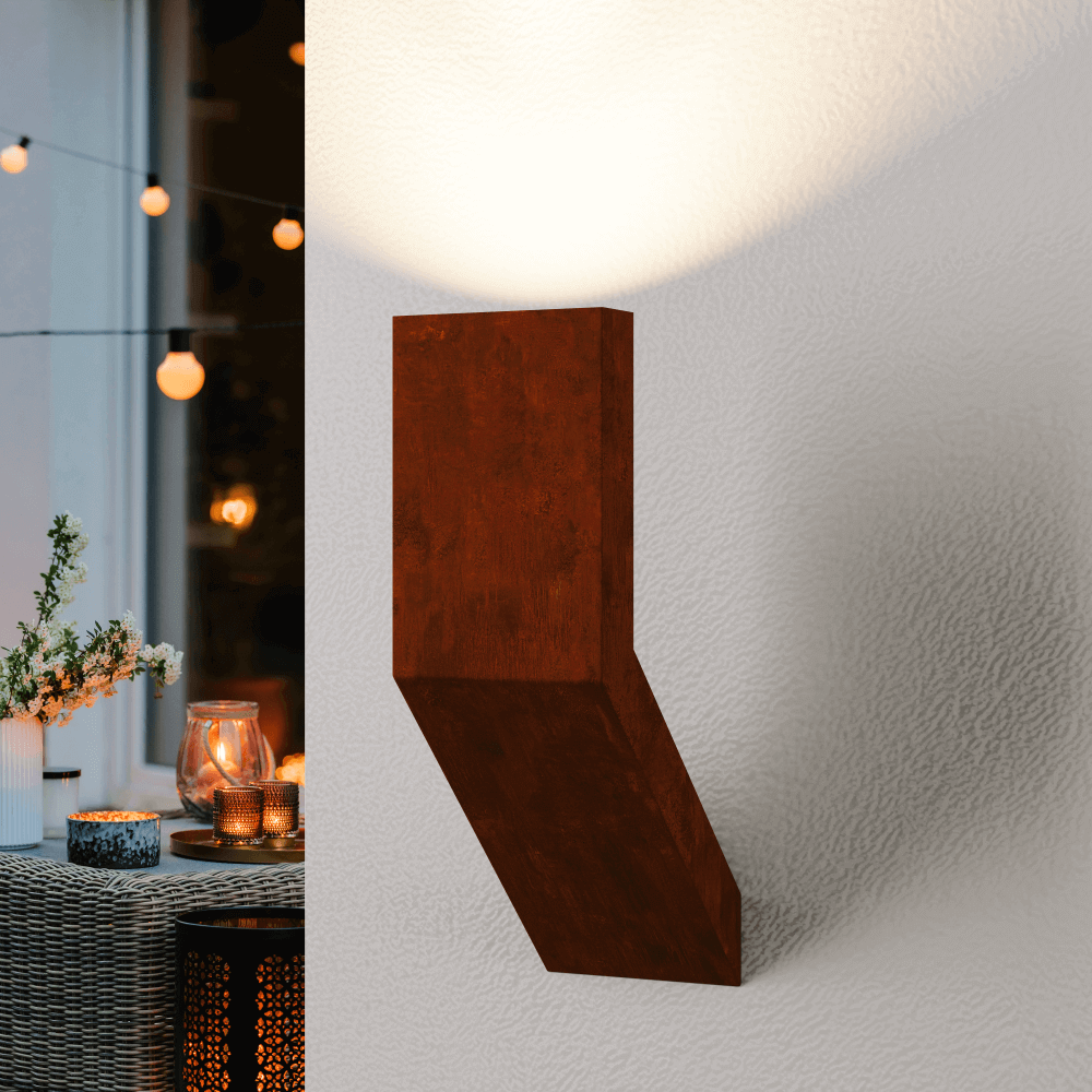 The uniquely designed and modern BIANCA Corten steel wall light combines aesthetics with functionality. Engineered for outdoor conditions, this stylish fixture can also be creatively integrated into interior spaces. With its unconventional shape, this light will undoubtedly become a striking accent in your home surroundings.