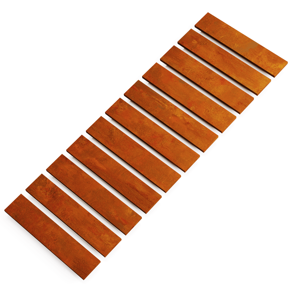 Path Tiles – ISLA. If you prioritize an exclusive and durable walkway surface, ISLA Corten steel path tiles are a solid choice. Made from 4 mm thick Corten steel, these tiles feature a 30 mm high folded edge, adding volume and structure. The inner reinforcement ribs ensure stability and long-lasting durability.